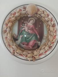 piatto anni 60 madonna di Pompei in ceramica con conchiglie fatto artigianalmente