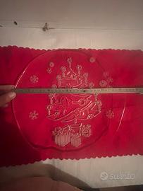 Piatto rotondo in vetro trasparente con decorazione natalizia in rilievo.