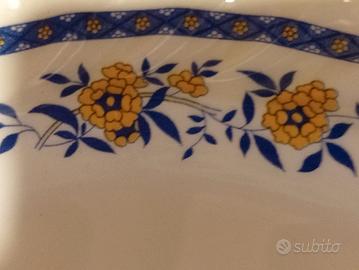 piatto in ceramica con decori blu e gialli ultimo Natale del 900 da appendere o utilizzare in cucina