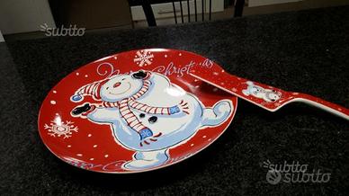 Piatto per Torta Natalizio con spatola . Vera ceramica . Diametro 30cm Ritiro presso il mio domicilio o spedizioni a carico di chi compra tramite ricarica carta.