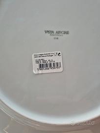 Si tratta di un piatto in porcellana bianca della linea "Perla" di Vista Alegre. La linea "Perla" è un modello moderno e robusto, progettato per l'uso quotidiano o alberghiero ed è adatto al microonde e alla lavastoviglie.