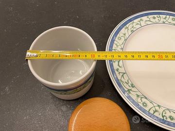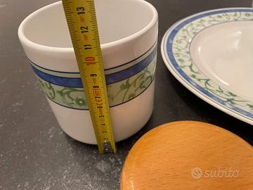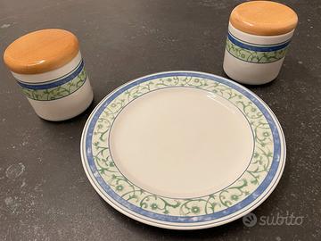 Vendo set composto da n.2 barattoli richiudibili con tappo in legno e n. 1 piatto rotondo da portata. In foto sono riportate le misure del piatto e dei barattoli. Prodotti mai utilizzati