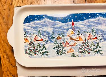 Piatto rettangolare da portata natalizio, brand DERUTA - TOMASSINI. Mai utilizzato, confezionato nella scatola originale. Lunghezza: 37cm Larghezza: 17cm