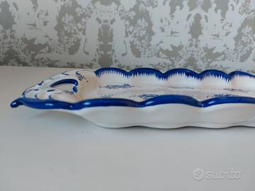 Vassoio in ceramica bianca con disegni blu. Di fattura portoghese, bello da usare come vassoio, svuota tasche, ma anche da appendere. Nuovo.