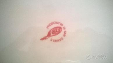 Piatto da portata ovale (cm 40 x 29,5) in ceramica chiamato anche “sperlunga” o vassoio da portata; è un manufatto artigianale raffinato e raro; destinato in particolare a collezionisti. Prodotto con il marchio del prosciutto San Daniele FVG