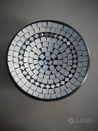 Piatto svuotatasche centrotavola artigianale nuovo con applicazioni a mosaico in vetro, nero in terracotta con decorazioni molto elegante, adatto sia ad uno stile dal gusto barocco, che moderno ed etnico. Vendo per inutilizzo. Mai usato.