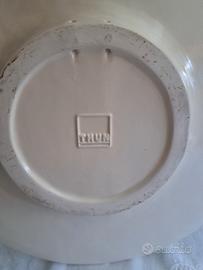 bellissimo piatto vintage in ceramica italiana Thun . ottimo stato decorazione floreale in rialzo con tulipani . diametro 32 cm h 4.5 cm peso 1.750. si può utilizzare da appendere al muro come decorazione o collezione oppure come piatto decorativo svuota tasche porta caramelle o altro