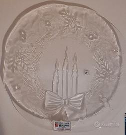 IDEA NATALE !!! PIATTO VASSOIO CENTROTAVOLA vintage, 33,5 cm di diametro - vetro - IVV MADE IN ITALY SELEZIONE MOUTH BLOWN, ottimo da regalare, ancora con adesivi acquisto come da foto