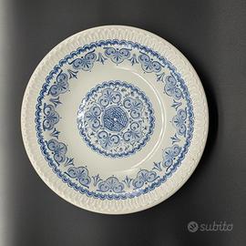 Direttamente dalla tradizione italiana: autentico piatto retrò vintage in ceramica decorato a mano, stile "della nonna", made in Italy S.C. Città della Ceramica - Vietri. Decoro floreale blu cobalto su fondo avorio, lavorazione artigianale, elegante bordatura a rilievo. Pezzo rarissimo, per veri amanti del rustico raffinato e dello stile classico italiano, di quelli che non se ne trovano più.