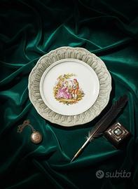 🇫🇷: Assiette vintage, porcelaine ancienne, objet de collection rare, décor baroque.