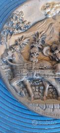 bassorilievo che raffigura l'Etna, con scena di vita tradizionale Siciliana provincia di Catania, con il Vulcano Etna sullo sfondo, detto anche Mongibello , e carretto . scritta La.sicilia vi attende