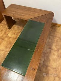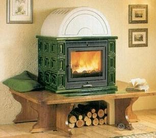 Giropanca in legno per stufa Piazzetta Stubotto, con maiolica di protezione color verde bottiglia, buone condizioni