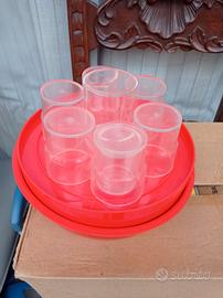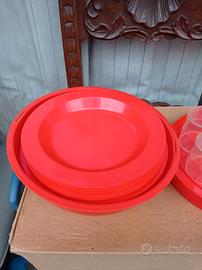 originale Pic ball Guzzini anni 70/80,colore rosso,set da 6 piatti piani,fondi e frutta.e bicchieri plastica,i primi e secondi un poco usati. la chiusura è ermetica,leggero da trasportare .