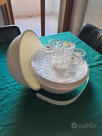 Pic Boll Set da pic nic disegnato da Carlo Viglino per Guzzini nel 1968. La sfera contiene tutto il necessario per un pic nic: 2 contenitori, 1 vassoio, 6 piatti piani, 6 piatti fondi, 6 piatti frutta/dolce, 6 bicchieri, 1 contenitore per olio e aceto, 1 barattolo per sale e pepe. Il diametro della sfera è di 28 cm e pesa 2,8 kg