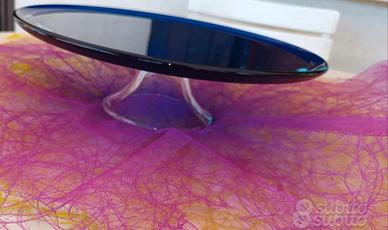 Vendesi piccola alzata in vetro blu cobalto con base in vetro trasparente, perfetta per dolci o centro tavola o per la frutta o portaoggetti, diametro piatto 31,5 cm e altezza 9 cm, perfette condizioni, no spedizione e consegna diretta in zona Lancenigo di Villorba
