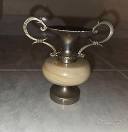Soprammobile, piccola anfora in marmo, onice e peltro. Vintage, circa anni '70/'80