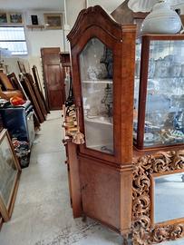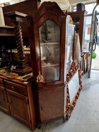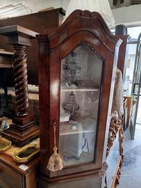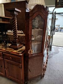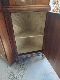 Piccola angoliera con vetrina superiore in radica di noce. Misure: (50 x 36 h. 178). Ottime condizioni!