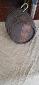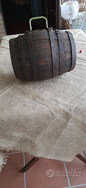 Piccolo e grazioso Botticino in legno con cerchi in ferro, lunghezza/altezza cm 26. Ha solo un' apertura/ buco vicino al manico come in foto. Oggetto vintage anni 50/60. Oggetto rustico da abbellimento ambiente.