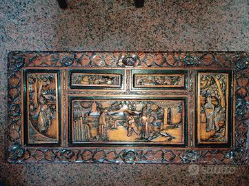 bellissima cassapanca in legno massello intagliata a mano. misure 70x32x36