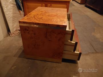 bellissima cassettiera con tre cassetti in radica di pioppo con finiture dorate del mobilificio Turri dimensioni circa 50x50x50 ottima come porta tv o da mettere in mezzo a due poltrone