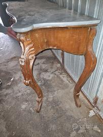 Salve vendo piccola consolle garganica con piano in marmo specchiera e sedia da restaurare