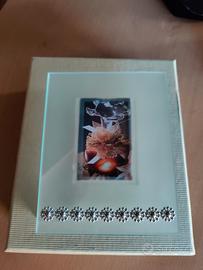 una cornice portafoto in vetro satinato con decorazioni a forma di fiore o foglia stilizzati