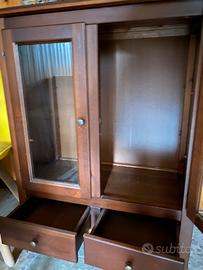 Credenza mis. 90x100 con due ante in vetro e 2 cassetti in legno