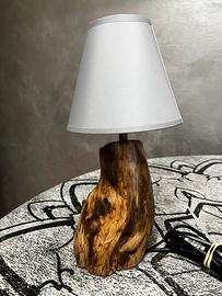 Piccola lampada da tavolo realizzata con legno di ulivo spiaggiato Pezzo unico