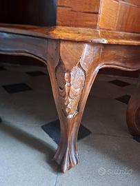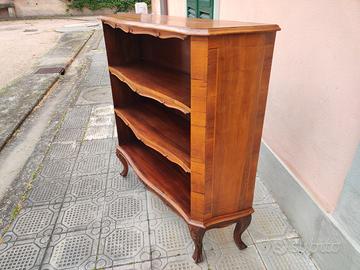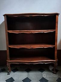 Piccola libreria in noce con intagli e intarsi, perfette condizioni. Dim. 100x100x30 cm.