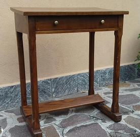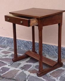 Si tratta in realtà di un antico banco di scuola in legno, dotato di cassetto e pedana appoggiapiedi. Perfetto come scrivania piccola ma elegante e originale. Il piano leggermante inclinato ne rende particolarmente comodo l'utilizzo. Altezza massima cm. 84, minima cm. 81. Larghezza cm. 71. Profondità cm.47. Usato ma in buono stato di conservazione. Solida la struttura. Non disponibile per la spedizione