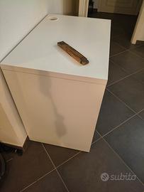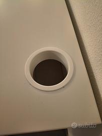 Piccola scrivania salva spazio con lato sinistro chiuso e lato destro struttura aperta, cassetto, spazio porta ciabatta e foro passacavi. Dimensioni: Larghezza 73 cm Profondità 50 cm Altezza 75 cm