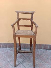 seggiolina in legno con sedile impagliato e braccioli, in buono stato dim. largh. seduta cm 30, altezza compreso schienale cm 88