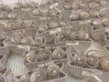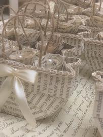 Piccole e originsli bags realizzate completamente a mano, indicate come porta confetti o come segnaposto per le diverse cerimonie.