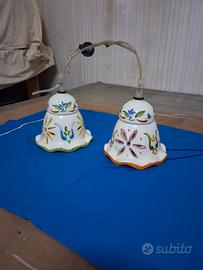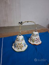 due campane in ceramica decorate a mano,luci da impiantare come si vuole. 25 cm di altezza x 25 du larg.