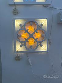 Luminarie in legno piccole da appoggio e da parete con misure che partono dai 15cm di diametro fino a 35cm. Con verniciatura certificata per l’esterno luci a led più trasformatore. Possibilità di personalizzare qualsiasi forma e misura. Prezzi dai 25 ai 60 euro. Per altre info e foto contattatemi