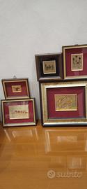 Si tratta dipiccole opere d'arte in miniatura, stampe, incisioni o cromolitografie, realizzate su un supporto che include lafoglia d'oroo una lamina dorata. Sono alloggiate in cornici di legno con passe-partout rosso e profili dorati, un tipo di produzione artigianale italiana diffusa a partire dagli anni '60.