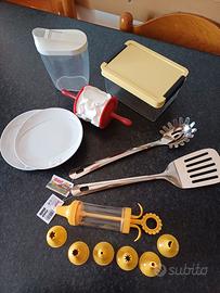 Utili attrezzi da cucina - 1° foto teglia decorativa per torta, coppia stampi in silicone per dolci, borraccia in vetro ed altro a scelta a 5€ al pezzo - 2° foto contenitori vari, mestoli, coppia piattini ed altro a scelta a 4€ al pezzo - 3° foto mini grattuggia, formine per biscotti, spazzola lava piatti sagomata ed altro a scelta a 3€ al pezzo - 4° foto contenitori vari, porta uovo, formina per il ghiaccio ed altro a scelta a 2€ al pezzo - 5° foto sagoma in silicone per uovo, paletta per farina, griglia di appoggio per fornelli, contenitori in silicone per muffin ed altro a scelta a 1€ al pezzo