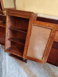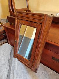 Vendesi armadietto vintage da parete in legno massello, altezza 60cm, con specchio originale leggermente ossidato. Ideale per chi è appassionato di oggetti d'epoca e cerca un pezzo da restaurare o come elemento decorativo.