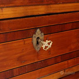 Piccolo cassettone in stile Neoclassico in ciliegio con filettature in mogano, ebano e acero. Fronte a tre cassetti, piedi tronco piramidali, bocchette e maniglie in bronzo lavorato e dorato. Interni in pioppo. Italia, fine XIX Secolo. Codice: ANMOST0308499 Condizione prodotto: Mobile che a causa dell'et e dell'usura richiede interventi di restauro e ripresa della lucidatura. Cerchiamo di presentare lo stato reale del mobile nel modo pi completo possibile con le foto. Qualora alcuni particolari non risultassero chiari dalle foto, fa fede quanto riportato nella descrizione. Misure: Largh.:88.00 cm, Alt.:90.00 cm, Prof.:47.00 cm QUESTO ARTICOLO E' DISPONIBILE PRESSO IL NEGOZIO DI CAMBIAGO Venditore: Barbara 351 6973896 (dal Luned al Venerd : dalle 9:00 alle 19:00, Sabato: dalle 10:00 alle 19:00) Per maggiori informazioni contattateci su Whatsapp. Disponibile ad inviare video o foto integrative su Whatsapp Di Mano in Mano, Negozio dell'usato di Cambiago, via Castellazzo 8. Oltre 4000mq espositivi, tra usato, vintage, modernariato, antiquariato, arte e libri. Esplora il nostro portale mercatiniusato.org per scoprire centinaia di arredi usati.