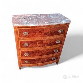# PREZZO PROMOZIONALE SUL NOSTRO SITO AZIENDALE# AZIENDA LA COMMODE di CORNO DAVIDE SEDE Via Degli Artigiani,39 20853 Biassono (MB) TELEFONO Mostra numero Sito Web www.lacommodedicornodavide.com Questo cassettone in stile è un pezzo di arredamento di grande fascino. Realizzato in mogano e legno di rosa di pregiata qualità, presenta un piano in marmo che mette in risalto le venature naturali del legno. La struttura robusta e le linee eleganti sapientemente arricchite da eleganti giochi di tarsie lo rendono un complemento d'arredo perfetto per un ambiente classico e raffinato. Dotato di ampi cassetti , offre un'ottima capacità di contenimento per riporre con ordine oggetti e indumenti. Un mobile di grande valore estetico e funzionale, ideale per arricchire con stile la tua casa. IMPORTANTE : Prima di effettuare un ordine contattateci per disponibilita' e tempi di consegna. SCHEDA PRODOTTO n° Prodotto/Sku : 1993 » Prodotto unico Marca: La Commode di Corno Davide tipologia: Como' provenienza: Italia dimensioni: L. 80 P. 42 H. 90 epoca: seconda meta' del 900 mat. esterno: Mogano e legno di rosa impellicciati mat. interno: Abete massello lucidatura: Gommalacca a tampone e cera Ferramenta : ottone anticato marmo macchiavecchia SHOP ONLINE : CONSEGNE IN TUTTA ITALIA VISITE IN SEDE SU APPUNTAMENTO I nostri prodotti sono mobili nuovi realizzati artigianalmente in pochi esemplari e realizzabili su misura : per visualizzare la nostra produzione completa e avere informazioni dettagliate su prezzi e promozioni visitate il nostro sito aziendale. Il nostro brand nasce da una lunga tradizione familiare dedicata al ripristino di mobili d'epoca e, grazie alla passione e all'amore per il legno e le sue innumerevoli sfumature, si è specializzata, oltre al restauro, anche nella vendita di mobili antichi e riproduzioni artigianali.