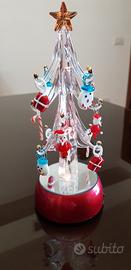 Vendo piccolo e simpatico albero di Natale con luci LED integrate,con decorazioni, perfetto per creare atmosfera natalizia in casa. Struttura trasparente con illuminazione colorata Decorazioni pendenti (Babbo Natale, pupazzi di neve, bastoncini). Base con luce funzionante, ideale per mensole, comodini o centrotavola.
