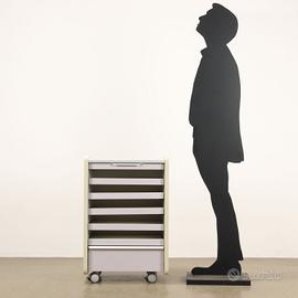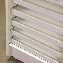 Mobile con piccoli scomparti scorrevoli e rotelle, legno nobilitato. Le maniglie