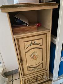 Poccolo mobile in legno, stile veneziano, ottimo stato anche se è presente una piccola scheggiatura alla base. Composto da un cassetto in basso, uni sportello, un vano superiore.