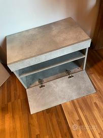 Piccolo mobiletto Ha le ruotine, ma volendo c’è la possibilità di levarle e appenderlo Colore grigio 36 x 60 H tot 44