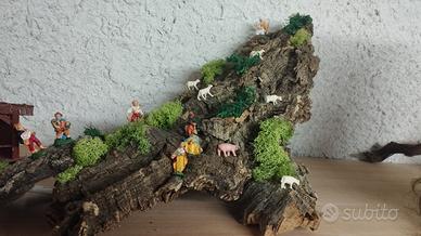 piccolo presepio 60cm x 40cm x 30cm di altezza, circa, realizzato su una radice di sughero. completo di pastori.