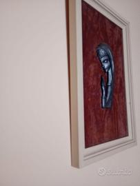 Piccolo quadretto che rappresenta il volto in bassorilievo di una donna intenta a pregare; Il volto in peltro su una base di velluto e una cornice laccata bianco; Misure: L cm19 X H cm29; Al prezzo di €20; Abbinabile ad altri oggetti pubblicati ballo scrivente; Consegna-ritiro preferibilmente in zona, eventuale spedizione a carico del destinatario; Maurizio cell.3771210704 primo contatto tramite sito oppure su WhatsApp non rispondo a numeri sconosciuti.