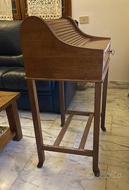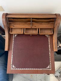 Scrittoio di legno massello con apertura a rullo con piano a ribalta. Manca un pomello del cassetto inferiore. Ritiro in presenza, Roma eur. Misure: Altezza massima 97 cm,