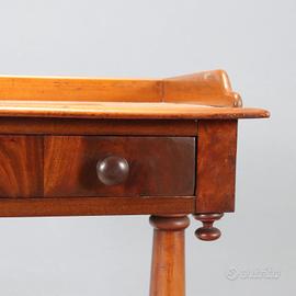 Piccolo scrittoio in mogano. Cassetto nella fascia sotto piano, balaustra superiore, due gambe tornite poggianti su base modanata unita da traversa. Piedi a cipolla. Italia, XIX Secolo. Codice: ANTATV0307123 Condizione prodotto: Prodotto che a causa dell'et e dell'usura richiede interventi di restauro e ripresa della lucidatura. Cerchiamo di presentare lo stato reale del mobile nel modo pi completo possibile con le foto. Qualora alcuni particolari non risultassero chiari dalle foto, fa fede quanto riportato nella descrizione. Misure: Largh.:77.00 cm, Alt.:82.00 cm, Prof.:50.00 cm DISPONIBILE RITIRO, PREVIO SALDO, SU APPUNTAMENTO PRESSO LA SEDE DI MILANO! Venditore: Barbara (dal Luned al Venerd : dalle 9:00 alle 19:00, Sabato: dalle 10.00 alle 19.00) Per informazioni dettagliate contattateci su Whatsapp. Disponibili ad inviare video o foto integrative su Whatsapp. Di Mano in Mano, Negozio dell'usato di Milano, viale Espinasse, 99 (Zona Certosa). Oltre 1000 mq di esposizione, tra usato, vintage, modernariato, antiquariato, arte e libri. Esplora il nostro portale mercatiniusato.org per scoprire centinaia di arredi usati.