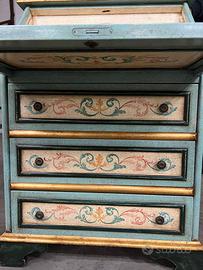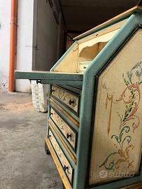 scrittoio in stile fiorentino con csssetti e cassettini, calatoia rientrante, utile e bello adstto a quslsiasi stile con piccolo tavolino come vompletamento rntranbi riportano medesimi disegni , bellissimi snche x edporre piccoli oggetti da collezione