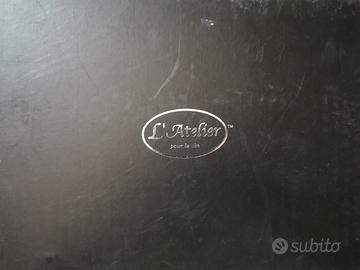 Set composto da 9 pezzi, praticamente nuovo, l' unico pezzo utilizzato è il cavatappi da tavola (o da cameriere). In scatola originale(di cartone rigido) con chiusura calamitata, che presenta diversi graffi.